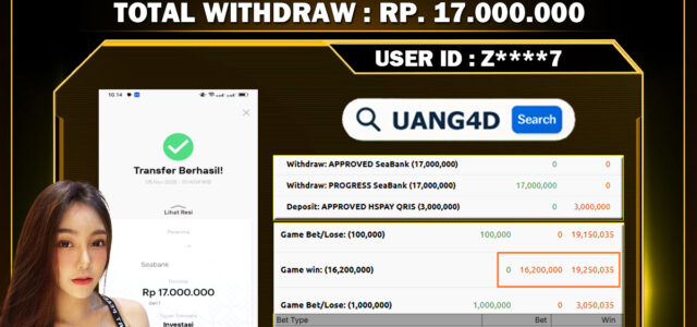 Setiap hari, member UANG4D berhasil meraih jackpot besar dari berbagai macam permainan livecasino ternama yang kami sediakan, seperti Roullete, Dragon & Tiger, Qiu Qiu dan masih banyak lagi. Kami secara rutin menampilkan bukti screenshot atau rekapan kemenangan yang berhasil diraih, mulai dari kemenangan ratusan ribu hingga puluhan juta rupiah. Semua slip kemenangan ini kami hadirkan untuk membuktikan bahwa di UANG4D, peluang menang itu nyata.