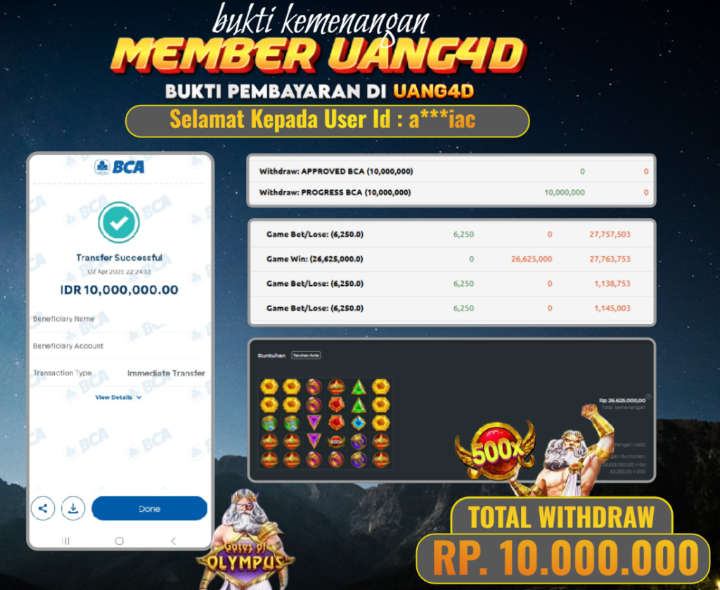 UANG4D– JACKPOT SLOT GACOR OLYMPUS1000 03 APRIL 2025, Jackpot Slot, Kemenangan Slot, Bukti Kemenangan Slot, Kemenangan Slot Pragmatic Play, Menang Slot online, Slot Gacor, Situs Aman Terpercaya, WD Berapapun Pasti DI Bayar Tuntas, Maxwin Slot Online.