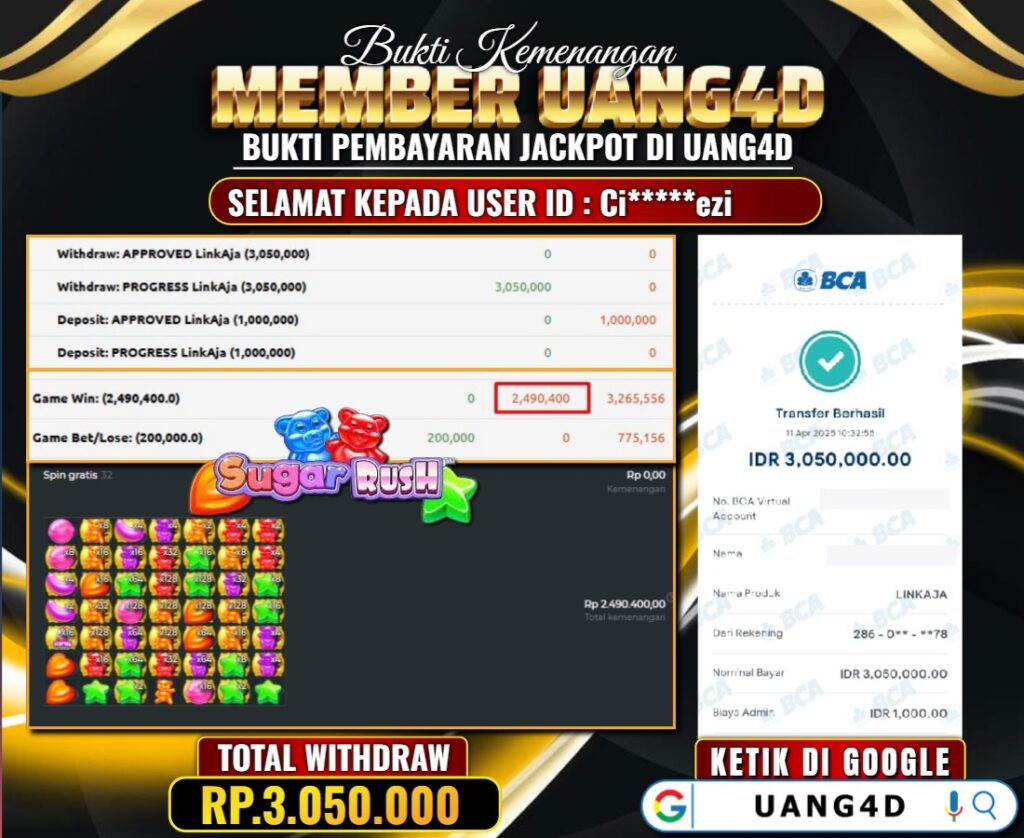 UANG4DJACKPOT SLOT GACOR SUGAR RUSH 11, APRIL, 2025 , Jackpot Slot, Kemenangan Slot, Bukti Kemenangan Slot, Kemenangan Slot Pragmatic Play, Menang Slot online, Slot Gacor, Situs Aman Terpercaya, WD Berapapun Pasti DI Bayar Tuntas, Maxwin Slot Online.