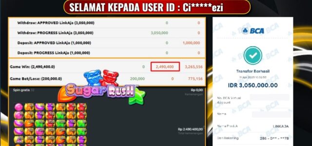 UANG4DJACKPOT SLOT GACOR SUGAR RUSH 11, APRIL, 2025 , Jackpot Slot, Kemenangan Slot, Bukti Kemenangan Slot, Kemenangan Slot Pragmatic Play, Menang Slot online, Slot Gacor, Situs Aman Terpercaya, WD Berapapun Pasti DI Bayar Tuntas, Maxwin Slot Online.