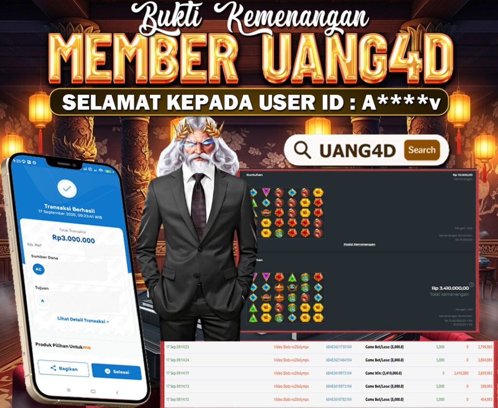 UANG4D JACKPOT SLOT Gates of Olympus 17 SEPTEMBER 2025, Kemenangan Slot, Bukti Kemenangan Slot, Kemenangan Slot Pragmatic Play, Menang Slot online, Slot Gacor, Situs Aman Terpercaya, Withdraw Berapapun Pasti DI Bayar Tuntas, Maxwin Slot Online.