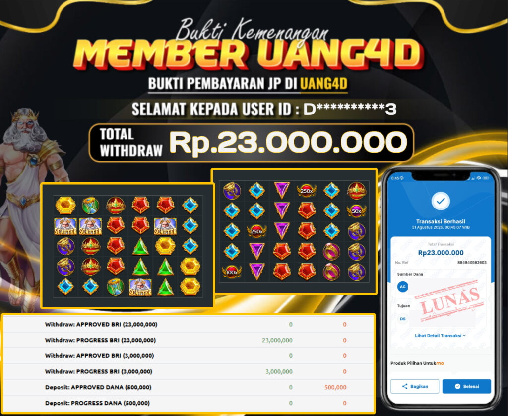 UANG4D –JACKPOT SLOT Gates of Olympus 31 AGUSTUS 2025, Kemenangan Slot, Bukti Kemenangan Slot, Kemenangan Slot Pragmatic Play, Menang Slot online, Slot Gacor, Situs Aman Terpercaya, Withdraw Berapapun Pasti DI Bayar Tuntas, Maxwin Slot Online.