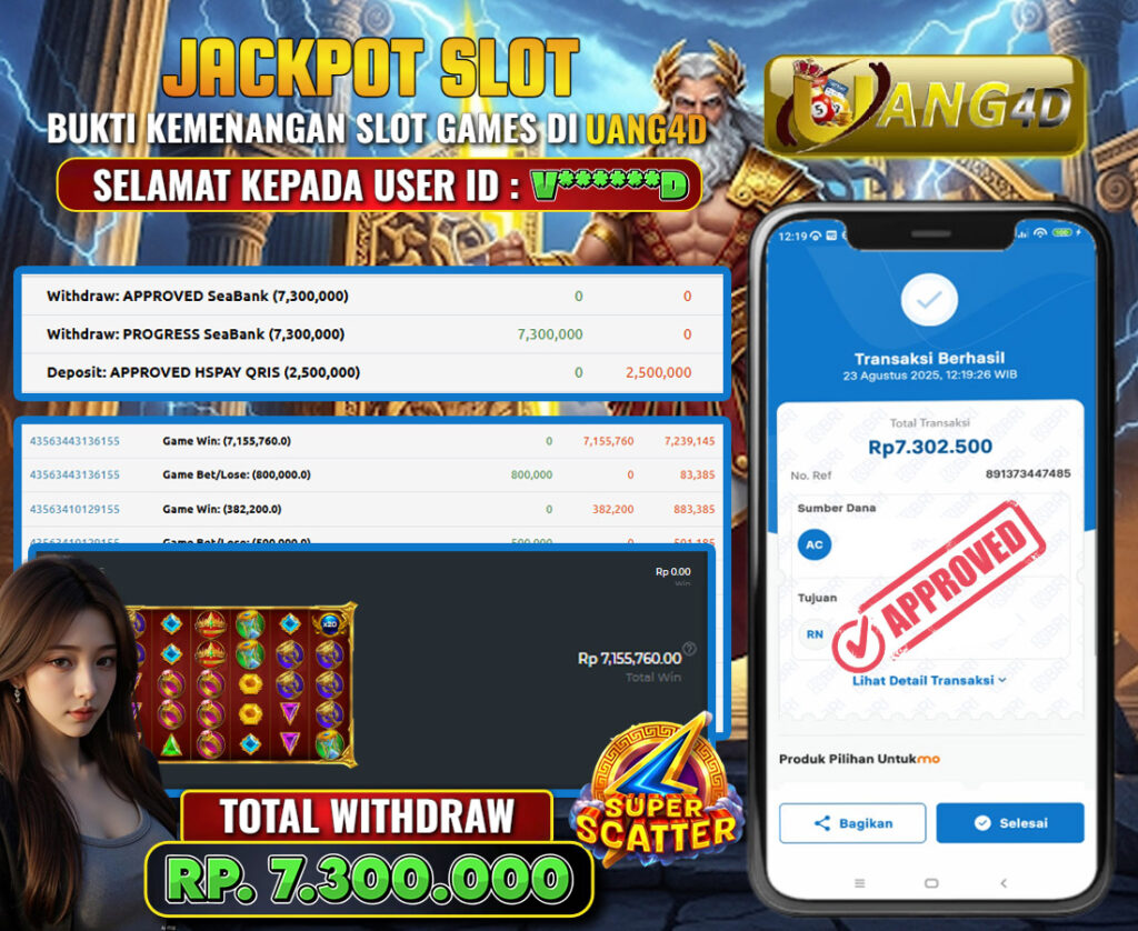 UANG4D JACKPOT SLOT Gates of Olympus Super Sceter 23 Agustus 2025, Kemenangan Slot, Bukti Kemenangan Slot, Kemenangan Slot Pragmatic Play, Menang Slot online, Slot Gacor, Situs Aman Terpercaya, Withdraw Berapapun Pasti DI Bayar Tuntas, Maxwin Slot Online.