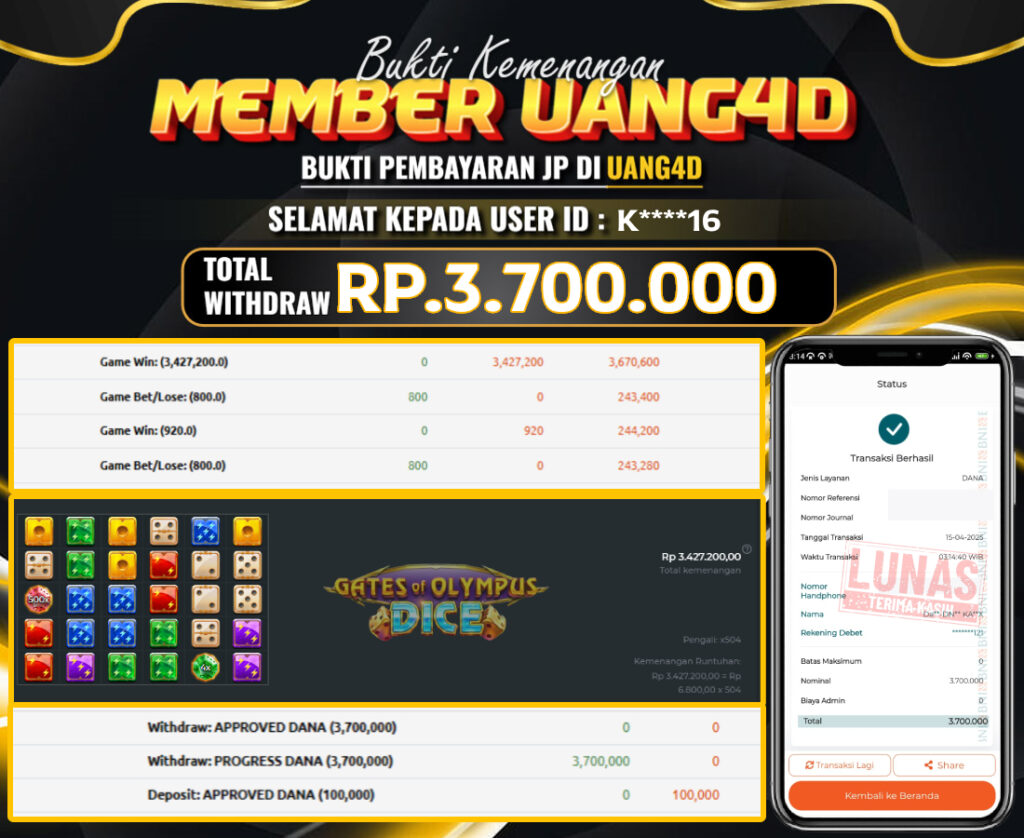 UANG4D –JACKPOT SLOT OLYMPUS DICE 15 APRIL 2025, Kemenangan Slot, Bukti Kemenangan Slot, Kemenangan Slot Pragmatic Play, Menang Slot online, Slot Gacor, Situs Aman Terpercaya, Withdraw Berapapun Pasti DI Bayar Tuntas, Maxwin Slot Online.