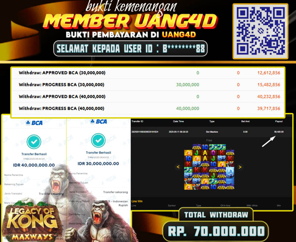 UANG4D – JACKPOT SLOT Legacy Of Kong Maxways , Jackpot Slot, Kemenangan Slot, Bukti Kemenangan Slot, Kemenangan Slot Pragmatic Play, Menang Slot online, Slot Gacor, Situs Aman Terpercaya, Withdraw Berapapun Pasti DI Bayar Tuntas, Maxwin Slot Online.
