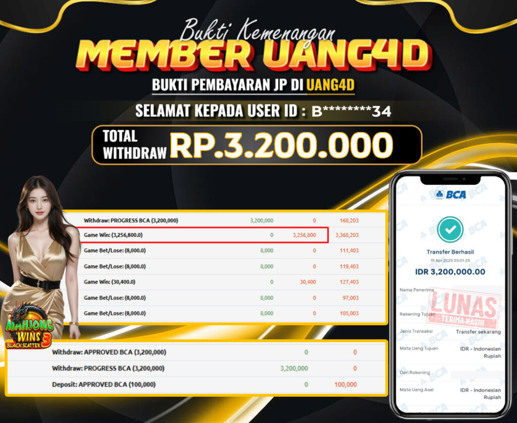 UANG4D – JACKPOT SLOT MAHJONG WINS 3 15 APRIL 2025, Kemenangan Slot, Bukti Kemenangan Slot, Kemenangan Slot Pragmatic Play, Menang Slot online, Slot Gacor, Situs Aman Terpercaya, Withdraw Berapapun Pasti DI Bayar Tuntas, Maxwin Slot Online.