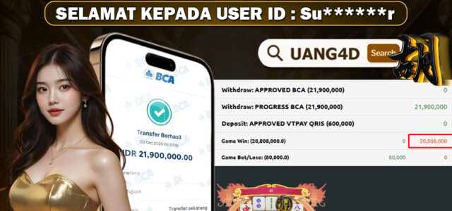 Jangan lewatkan kesempatan untuk meraih kemenangan besar. Daftar sekarang di UANG4D dan rasakan pengalaman bermain slot terbaik yang pernah ada! Putar gulungan, menangkan jackpot, dan jadilah bagian dari komunitas pemain sukses kami!