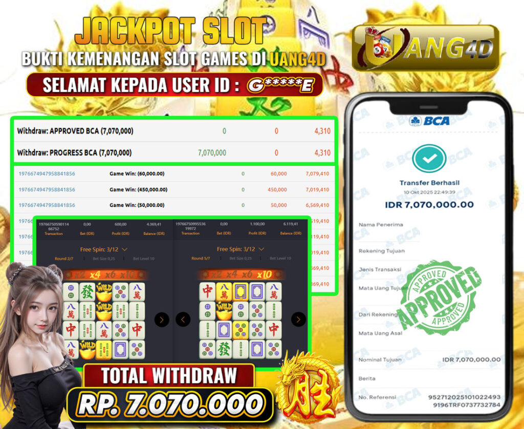 Jangan lewatkan kesempatan untuk meraih kemenangan besar. Daftar sekarang di UANG4D dan rasakan pengalaman bermain slot terbaik yang pernah ada! Putar gulungan, menangkan jackpot, dan jadilah bagian dari komunitas pemain sukses kami!