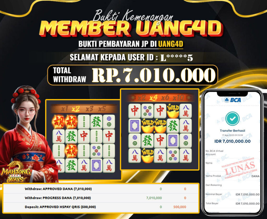 UANG4D – JACKPOT SLOT MAHYONG WAYS 17 AGUSTUS 2025 , Jackpot Slot, Kemenangan Slot, Bukti Kemenangan Slot, Kemenangan Slot PG SOFT Play, Menang Slot online, Slot Gacor, Situs Aman Terpercaya, Withdraw Berapapun Pasti DI Bayar Tuntas, Maxwin Slot Online.