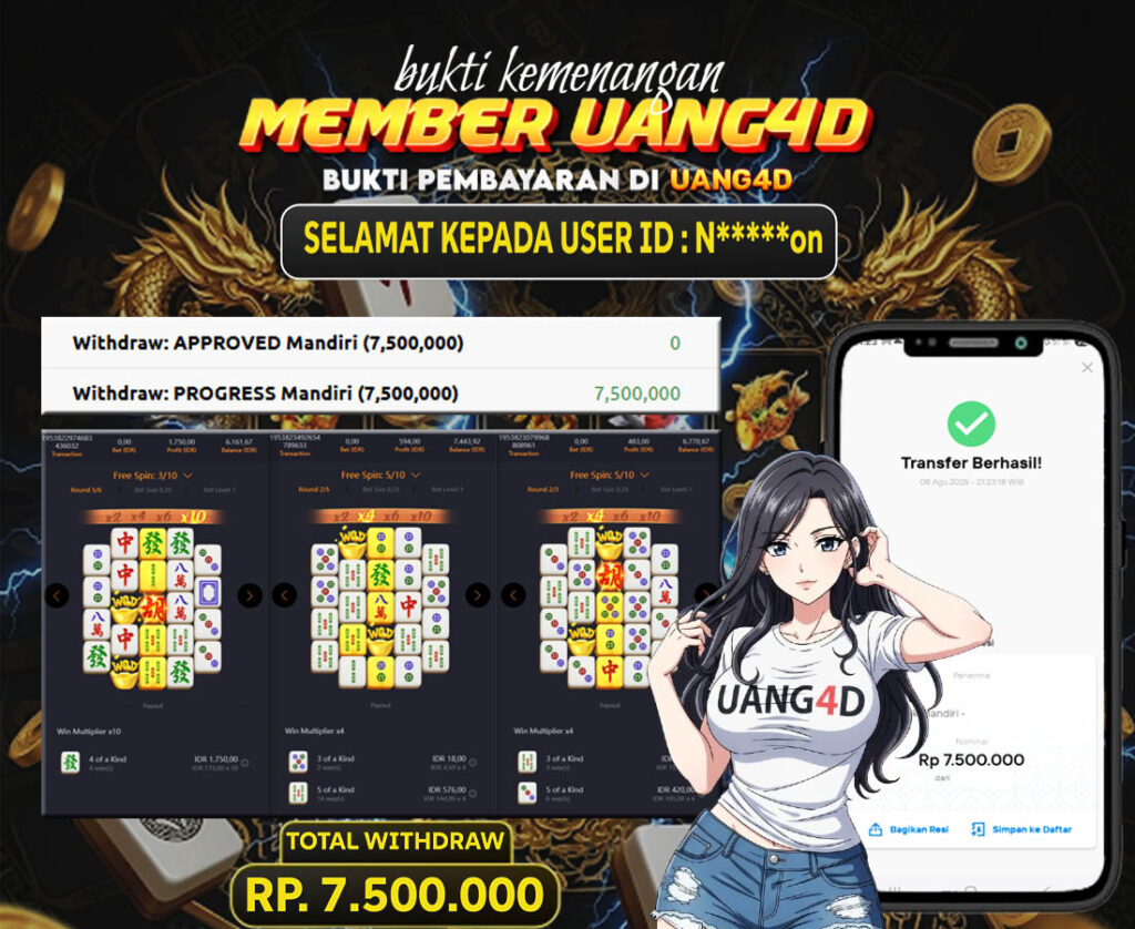 Jangan lewatkan kesempatan untuk meraih kemenangan besar. Daftar sekarang di UANG4D dan rasakan pengalaman bermain slot terbaik yang pernah ada! Putar gulungan, menangkan jackpot, dan jadilah bagian dari komunitas pemain sukses kami!