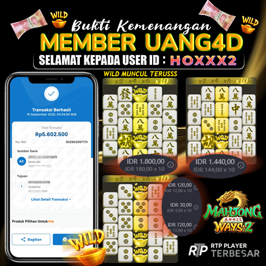 UANG4D – JACKPOT SLOT MAHYONG WAYS (2) 15 SEPTEMBER 2025 , Jackpot Slot, Kemenangan Slot, Bukti Kemenangan Slot, Kemenangan Slot PG SOFT Play, Menang Slot online, Slot Gacor, Situs Aman Terpercaya, Withdraw Berapapun Pasti DI Bayar Tuntas, Maxwin Slot Online.