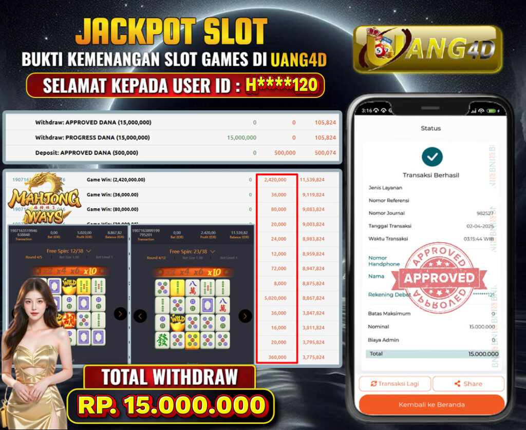 UANG4D – JACKPOT SLOT MAHYONG WAYS, Jackpot Slot, Kemenangan Slot, Bukti Kemenangan Slot, Kemenangan Slot Pragmatic Play, Menang Slot online, Slot Gacor, Situs Aman Terpercaya, Withdraw Berapapun Pasti DI Bayar Tuntas, Maxwin Slot Online.