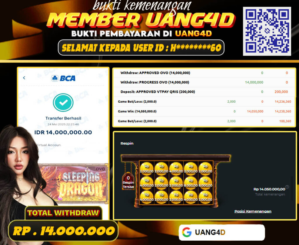 UANG4D –JACKPOT SLOT Sleeping Dragon 25 Mei 2025, Kemenangan Slot, Bukti Kemenangan Slot, Kemenangan Slot Pragmatic Play, Menang Slot online, Slot Gacor, Situs Aman Terpercaya, Withdraw Berapapun Pasti DI Bayar Tuntas, Maxwin Slot Online.