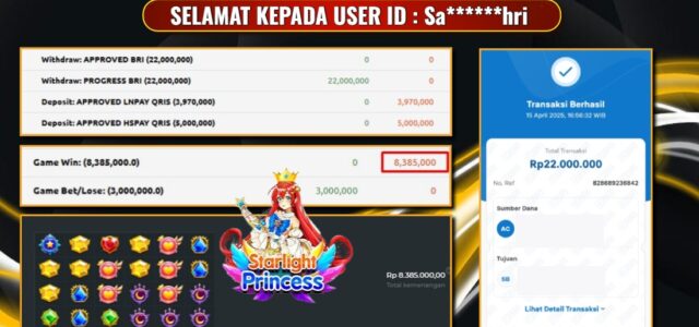 UANG4D –JACKPOT SLOT STARLIGHT PRINCES 15 APRIL 2025, Kemenangan Slot, Bukti Kemenangan Slot, Kemenangan Slot Pragmatic Play, Menang Slot online, Slot Gacor, Situs Aman Terpercaya, Withdraw Berapapun Pasti DI Bayar Tuntas, Maxwin Slot Online.
