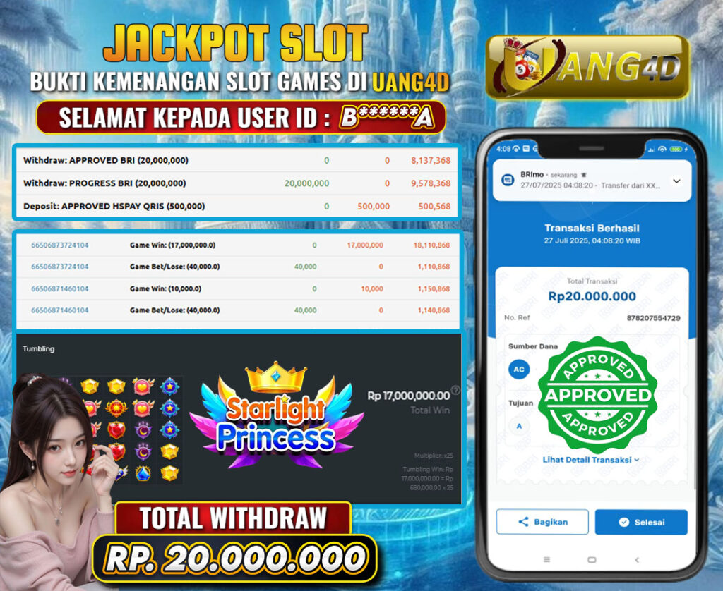 UANG4D –JACKPOT SLOT STARLIGHT PRINCES 27 JULI 2025, Kemenangan Slot, Bukti Kemenangan Slot, Kemenangan Slot Pragmatic Play, Menang Slot online, Slot Gacor, Situs Aman Terpercaya, Withdraw Berapapun Pasti DI Bayar Tuntas, Maxwin Slot Online.