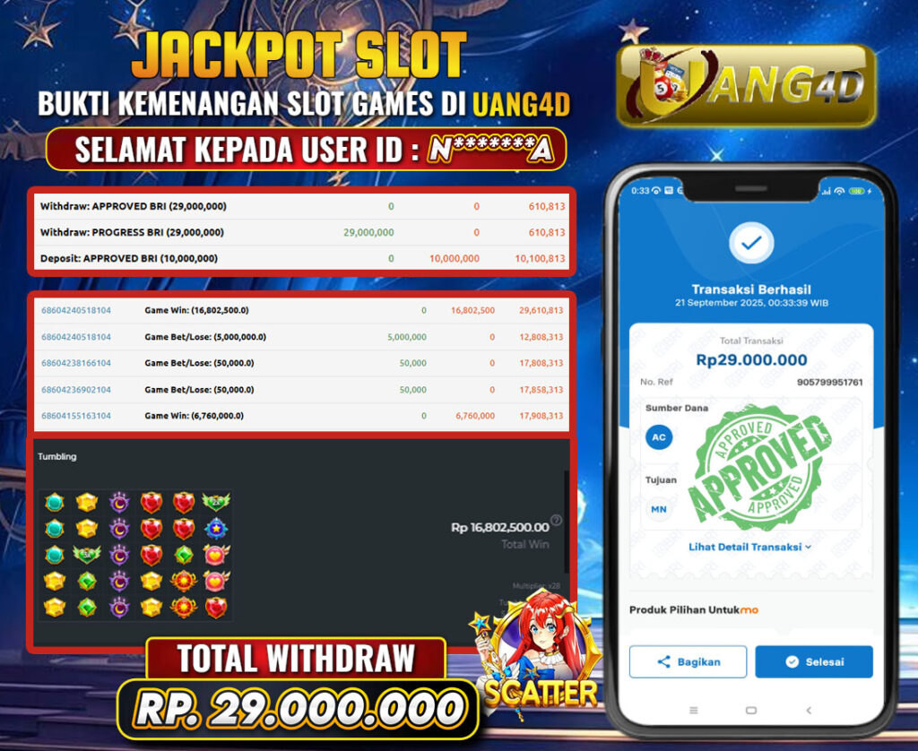 Jangan lewatkan kesempatan untuk meraih kemenangan besar. Daftar sekarang di UANG4D dan rasakan pengalaman bermain slot terbaik yang pernah ada! Putar gulungan, menangkan jackpot, dan jadilah bagian dari komunitas pemain sukses kami!