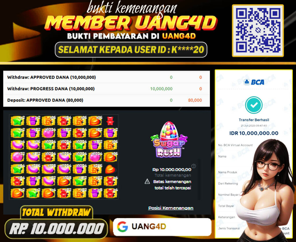 UANG4D –JACKPOT SLOT SUGAR RUSH 1000 21 juni 2025, Kemenangan Slot, Bukti Kemenangan Slot, Kemenangan Slot Pragmatic Play, Menang Slot online, Slot Gacor, Situs Aman Terpercaya, Withdraw Berapapun Pasti DI Bayar Tuntas, Maxwin Slot Online.