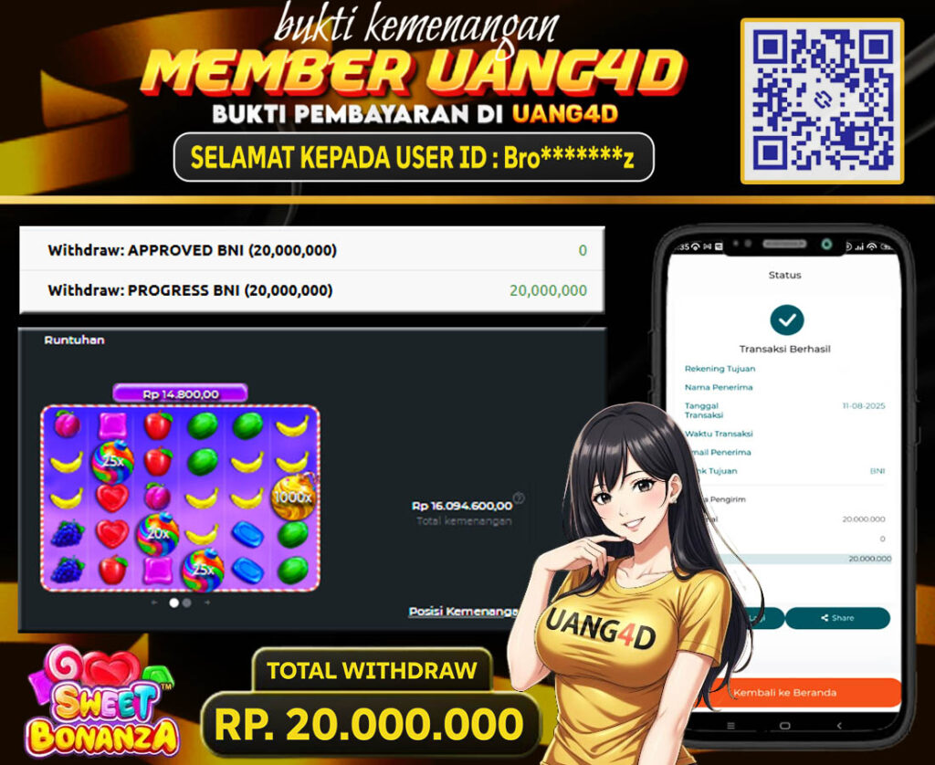 UANG4D –JACKPOT SLOT SWEET BONANZA 11 Agustus 2025, Kemenangan Slot, Bukti Kemenangan Slot, Kemenangan Slot Pragmatic Play, Menang Slot online, Slot Gacor, Situs Aman Terpercaya, Withdraw Berapapun Pasti DI Bayar Tuntas, Maxwin Slot Online.