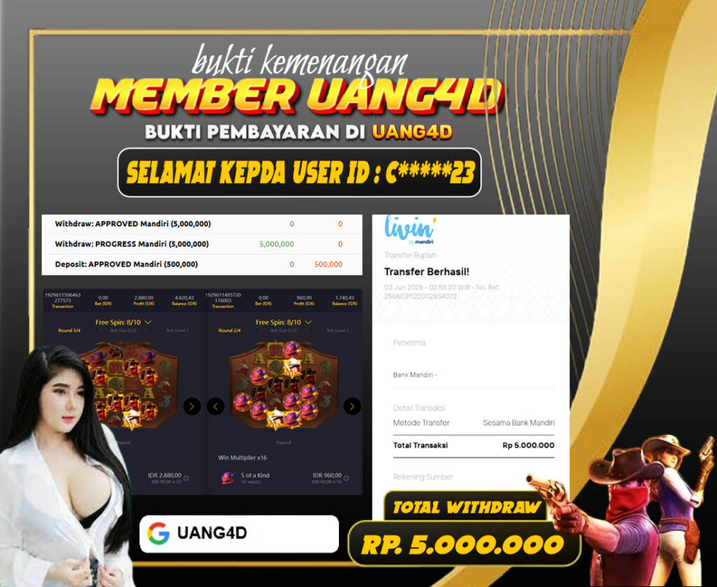 Jangan lewatkan kesempatan untuk meraih kemenangan besar. Daftar sekarang di UANG4D dan rasakan pengalaman bermain slot terbaik yang pernah ada! Putar gulungan, menangkan jackpot, dan jadilah bagian dari komunitas pemain sukses kami!
