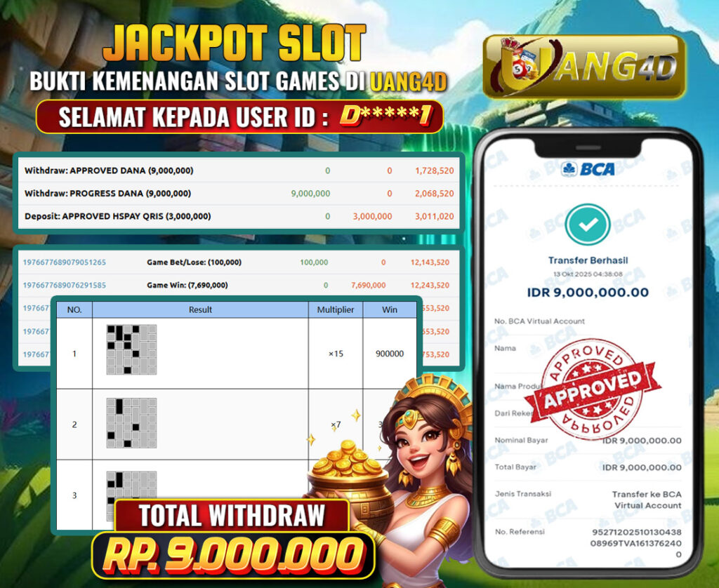 UANG4D JACKPOT Slot Wow Gaming (Putri Gunung Ledang) 13 Oktober 2025, Kemenangan Slot, Bukti Kemenangan Slot, Kemenangan Slot Wow Gaming, Menang Slot online, Slot Gacor, Situs Aman Terpercaya, Withdraw Berapapun Pasti DI Bayar Tuntas, Maxwin Slot Online.