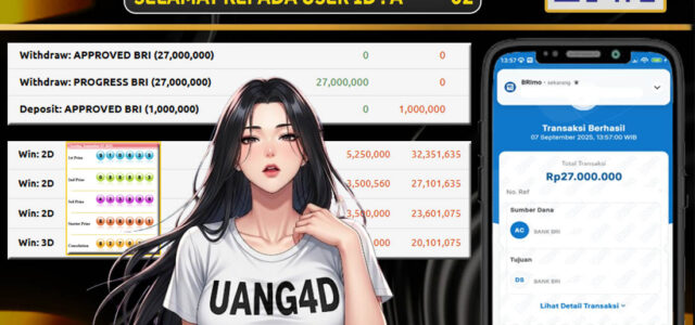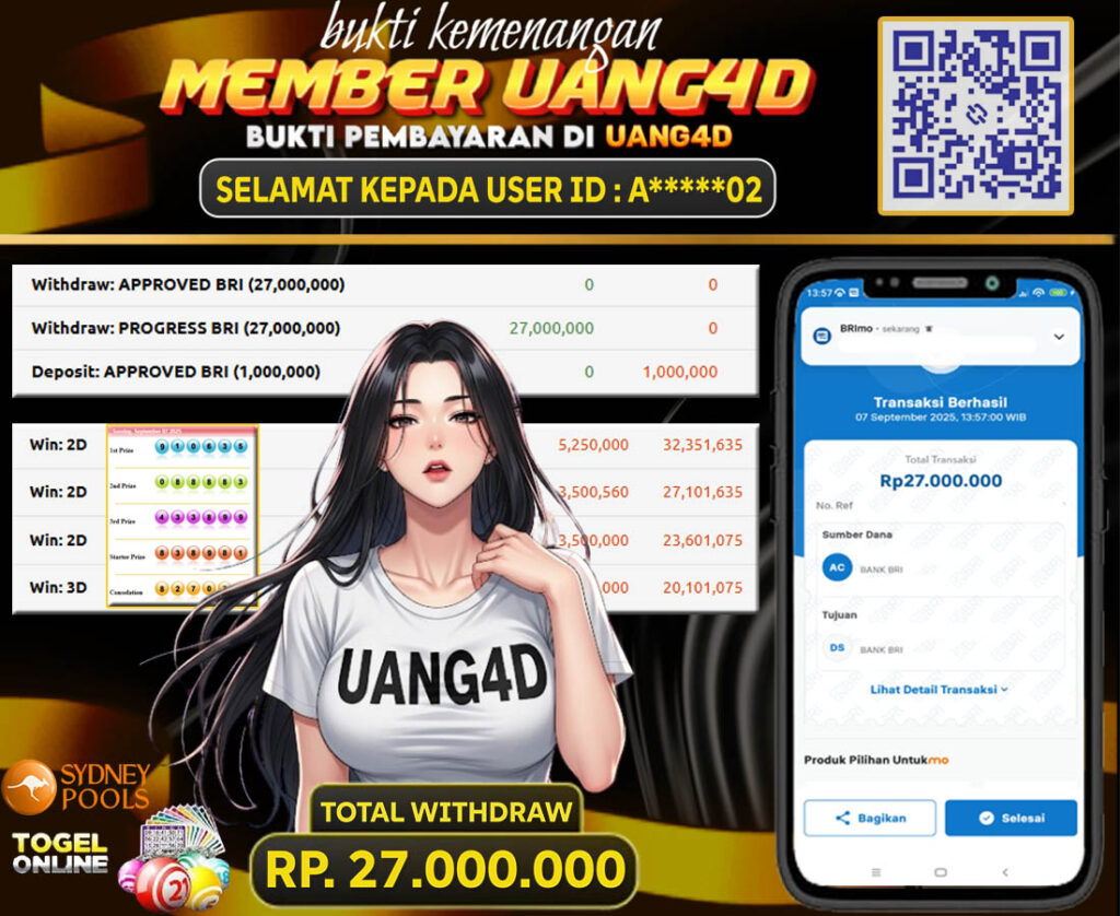 Setiap hari, member UANG4D berhasil meraih jackpot besar dari berbagai provider togel ternama yang kami sediakan, seperti Sydney, Singapore, Hongkong dan masih banyak lagi. Kami secara rutin menampilkan bukti screenshot atau rekapan kemenangan yang berhasil diraih, mulai dari kemenangan ratusan ribu hingga puluhan juta rupiah. Semua slip kemenangan ini kami hadirkan untuk membuktikan bahwa di UANG4D, peluang menang itu nyata.