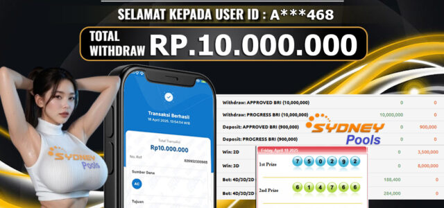JACKPOT TOGEL SYDNEY POOLS 18 APRIL 2025, Jackpot Togel Akurat, Kemenangan Togel, Bukti Kemenangan Togel, Kemenangan Togel SYDNEY , Menang Togel online, Togel Gacor, Situs Aman Terpercaya, WD Berapapun Pasti DI Bayar Tuntas, Maxwin Togel Online.